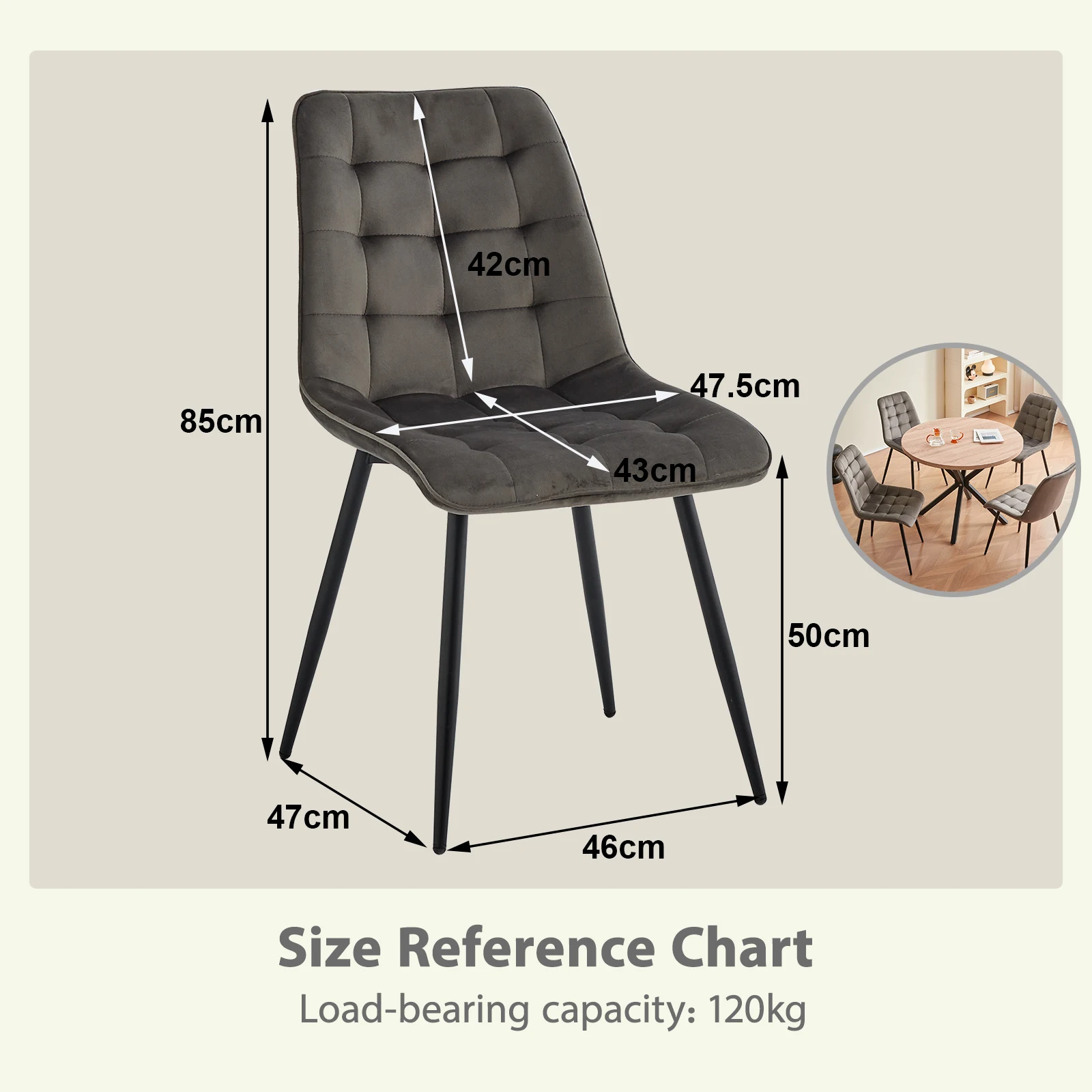 STURDY DINING CHAIRS: The dining chair set features hard-wearing velvet upholstery, soft sponge filling and sturdy metal legs making the velvet chairs very stable and durable. They can support up to 120kg.