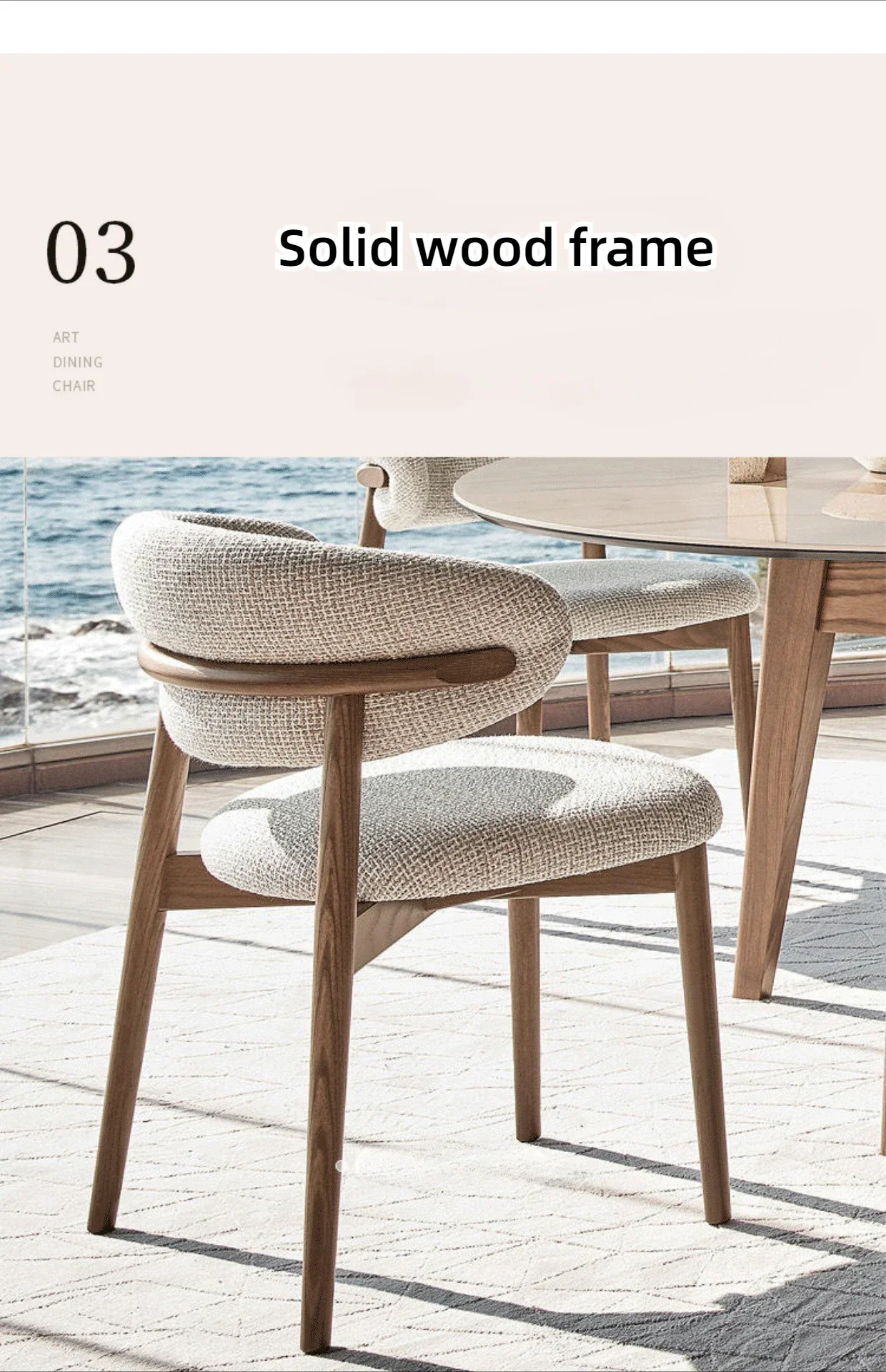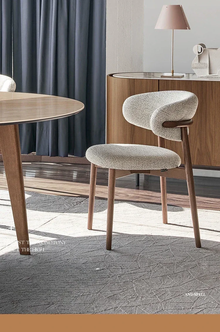 Light Luxury Solid Wood Comfortable Chair Creative Home Office Desk Restaurant Coffee Shop Backrest Fabric Dining Chairs