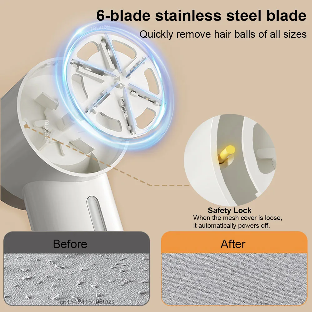 【Powerful and Efficient】Our raugee electric lint remover boasts a 6-blade cutter, catering to various fabric types. Its robust motor swiftly eliminates lint, pilling, and fuzz from garments, blankets, sofas, and other textiles, restoring their pristine appearance.
