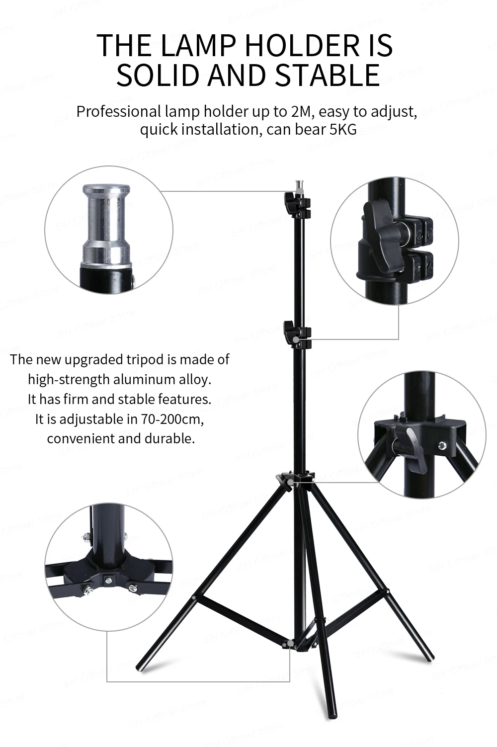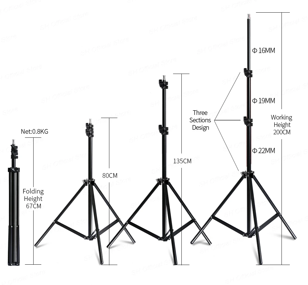 ❥ Light stand: Folded height 27inch(68cm), working height 79inch(200cm).High quality,stable and durable,easy to install and use.