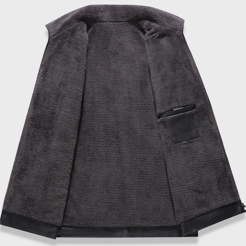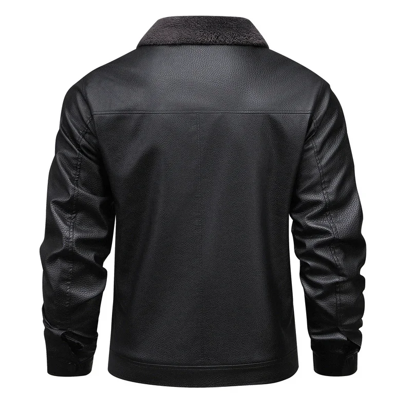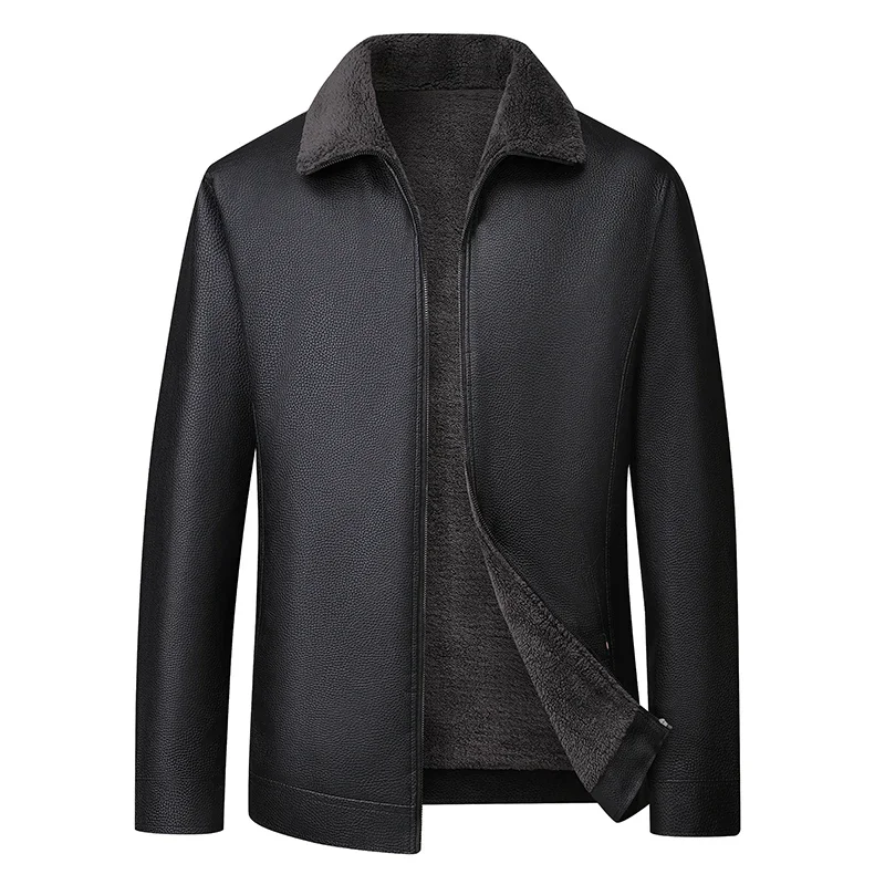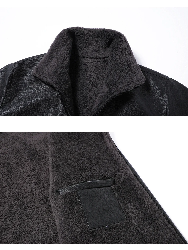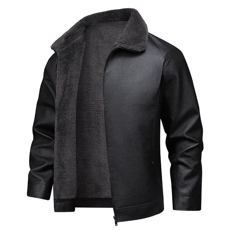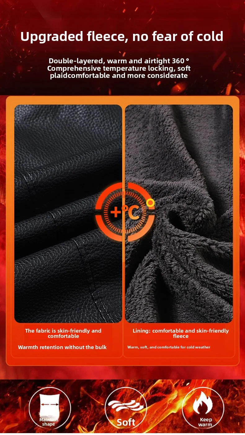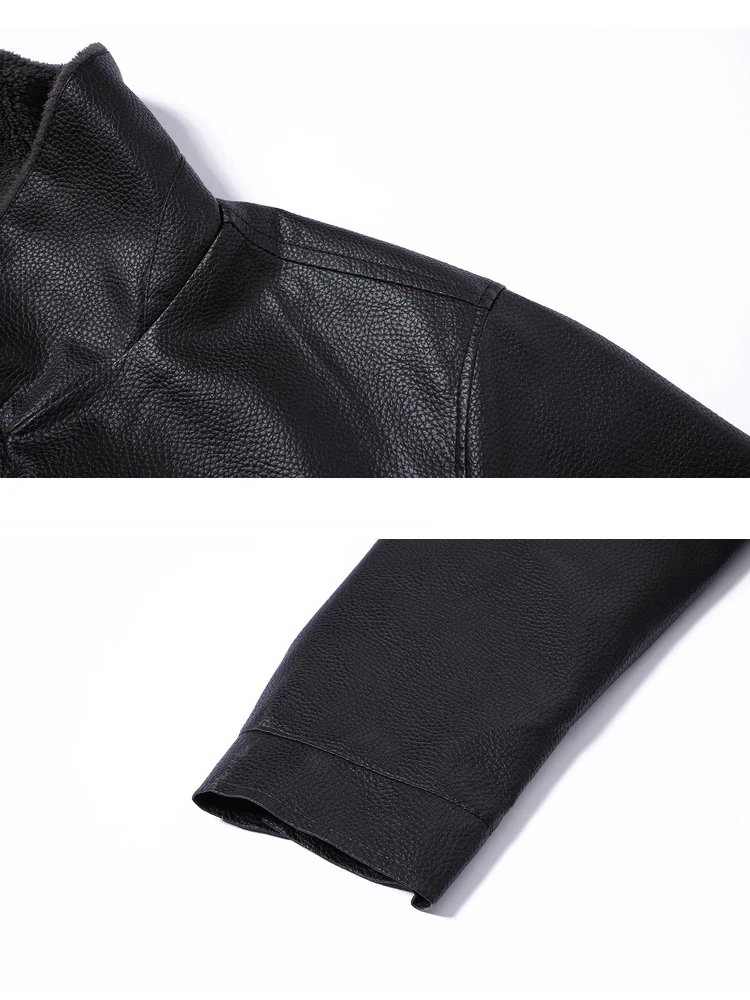 Soft Leather Jacket Men Fleece Lined Winter Faux Biker Jacket Black Fur Collar Motorcycle Leather Coat Casual Thick Warm Outwear